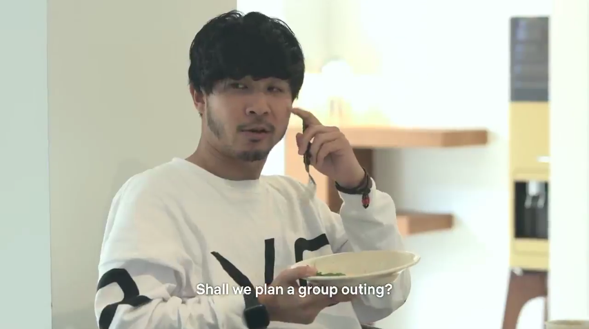 Cut to Kenji, like all musicians on the show before him, singing part of a song then telling his bandmates that he has moved in and making progress on friendships in the house. In true Terrace House fashion, he’s sparing no detail about what housemates have said to him and relaying it to the band to hear their opinions. Boom, cut to the Avex Artist Academy, Risako is teaching a class.